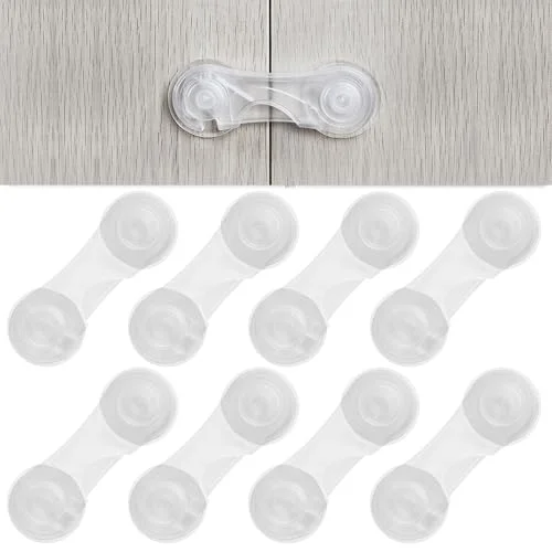 8 Packs Cabinet Door Locks feature an adhesive for simple installation. They prevent children from accessing cabinets and with potentially harmful items. This product safety with no edges. Adults can easily operate the locks using one hand without compromising security. Ideal for various applications.